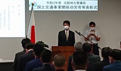 国土交通省北陸地方整備局金沢河川国道事務所長表彰を頂きました。