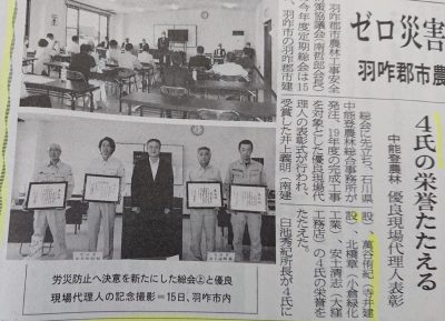 本人はもとより、会社としても大変うれしい受賞です。今後も皆様から信頼される工事を施工していけるように社員一同努力してまいります。