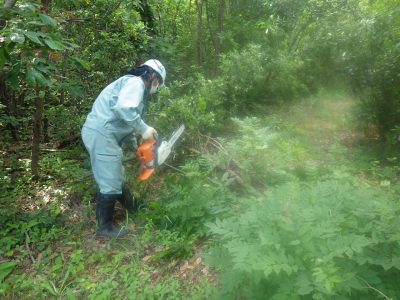 今回は春より多く、25名が参加しました。生活環境保全林周辺が除草され、遊歩道が通りやすいよう美しく整備されました。